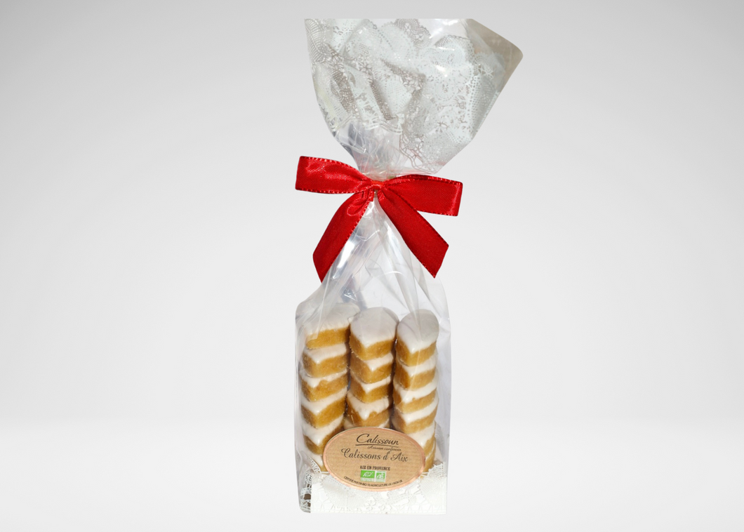 Le Calisson Bio est la déclinaison bio du Calisson Tradition, authentique calisson d’Aix-en-Provence (Indication Géographique Protégée), à la recette ancestrale : savant mélange d’amandes douces finement broyées, de melon de Provence confit dans notre atelier et d’écorces d’orange issus de l'agriculture biologique, déposé sur un fond d’hostie et nappé de glace royale.